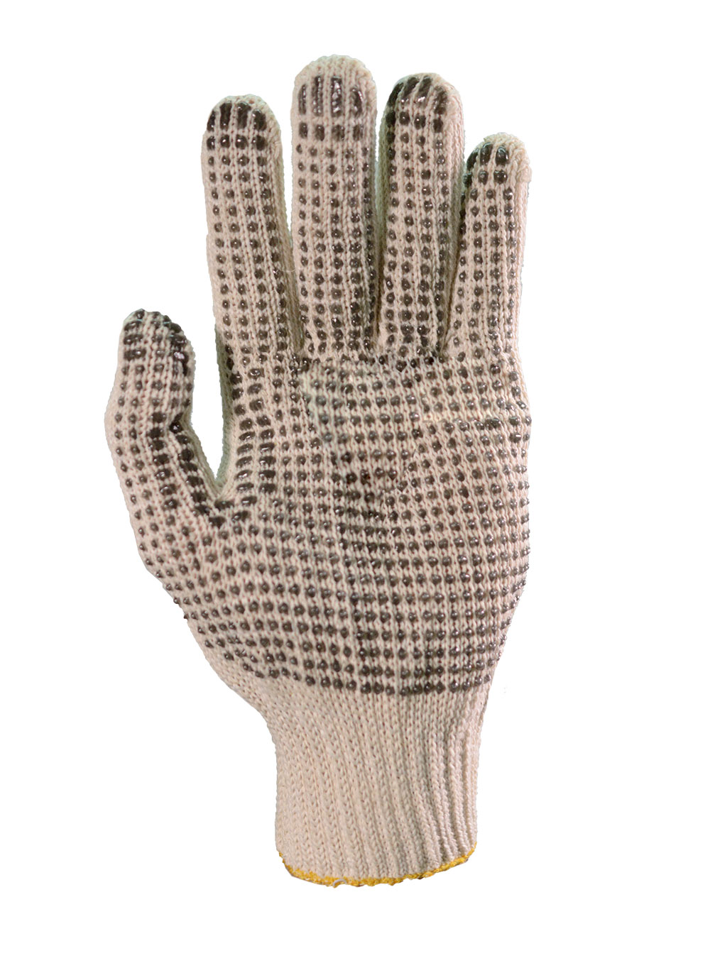 • Guante moteado tejido con hilado de algodón y poliéster sin costuras internas.