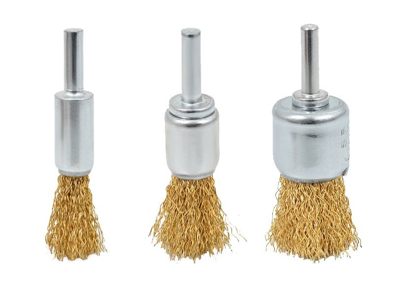 Cepillo de acero rizado y prensado de 0,30 mm. revestido en cobre/zinc.