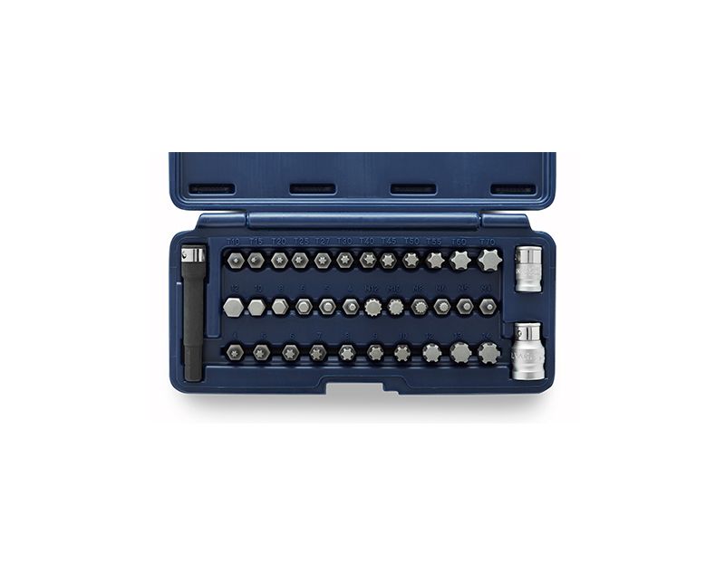 12 Puntas Torx: T-10, T-15, T-20, T-25, T-27, T-30, T-40, T-45, T-50, T-55, T-60 y T-70