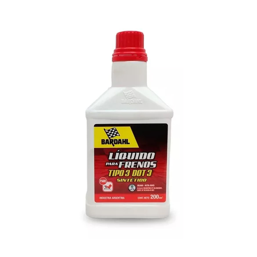 BENEFICIOS: *Su composición posee un alto punto de ebullición y alta estabilidad térmica. *Inhibe la corrosión. *Neutraliza los efectos adversos que puede provocar el ingreso de agua o polvo al sistema. *Elaborado en base a glicoles. *Posee una gran estabilidad térmica. baja volatilidad. *No posee aceites minerales en su composición. *Cumple con normas DOT 3. IRAM-AITA 6H3 (tipo 3) y SAE 1703. *Miscibilidad con todos los líquidos de frenos.