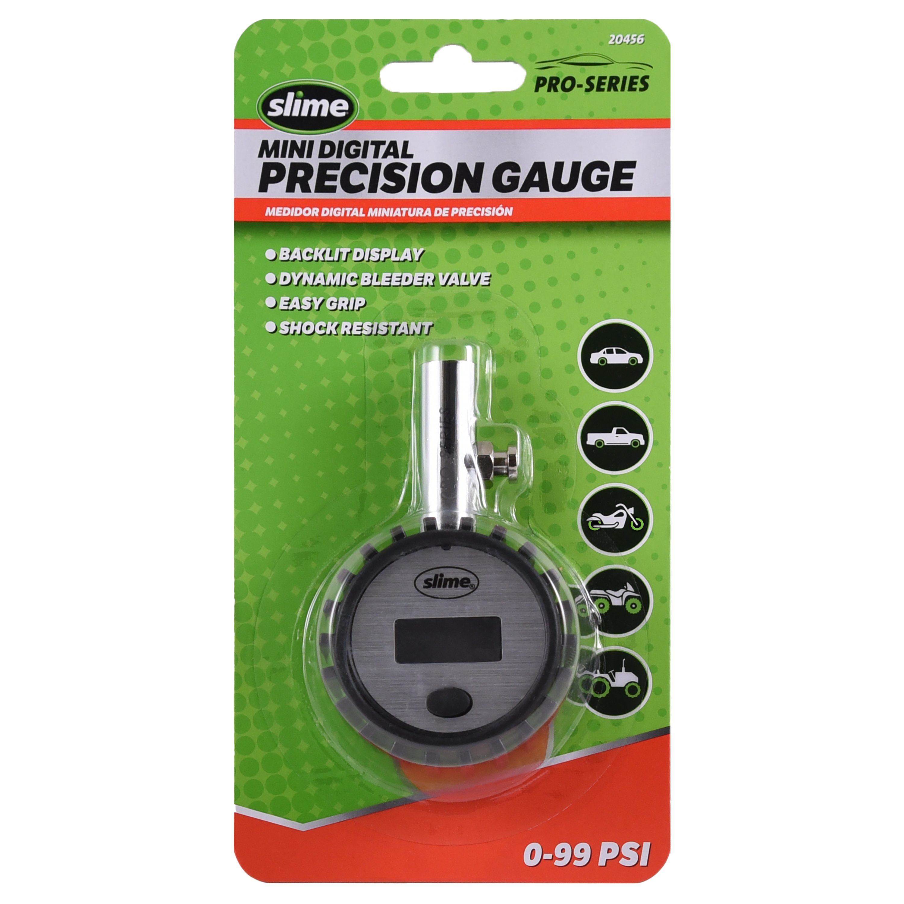 El mini manómetro digital de precisión Pro-Series ayuda a mantener los neumáticos a la presión óptima. Construido con una carcasa de goma robusta y resistente a los golpes que durará, este mini manómetro también cuenta con una pantalla digital retroiluminada y un pasador de purga dinámico para sacar cualquier exceso de aire.