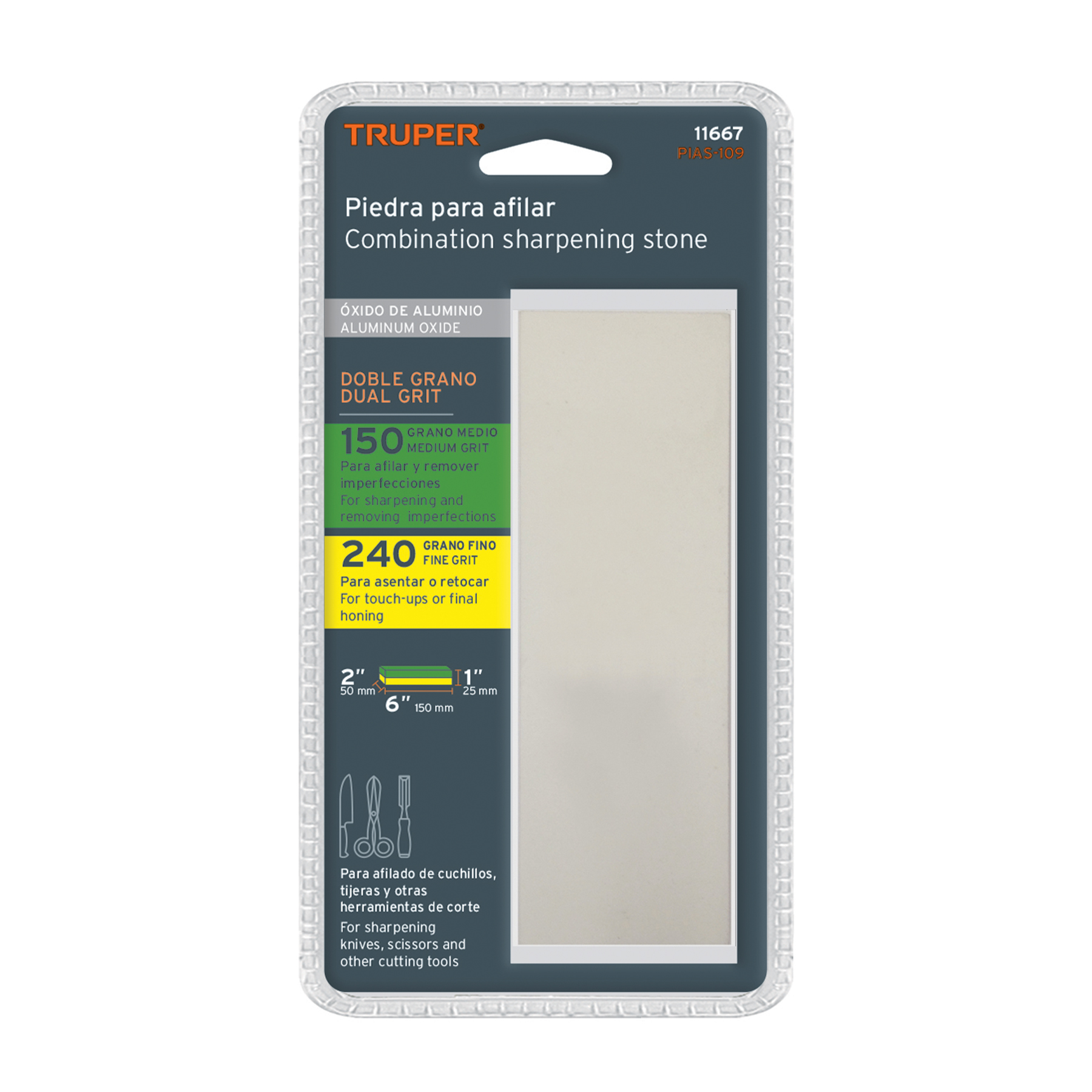 Grano 150 ideal para afilar. remover imperfecciones y grano 240 para asentar