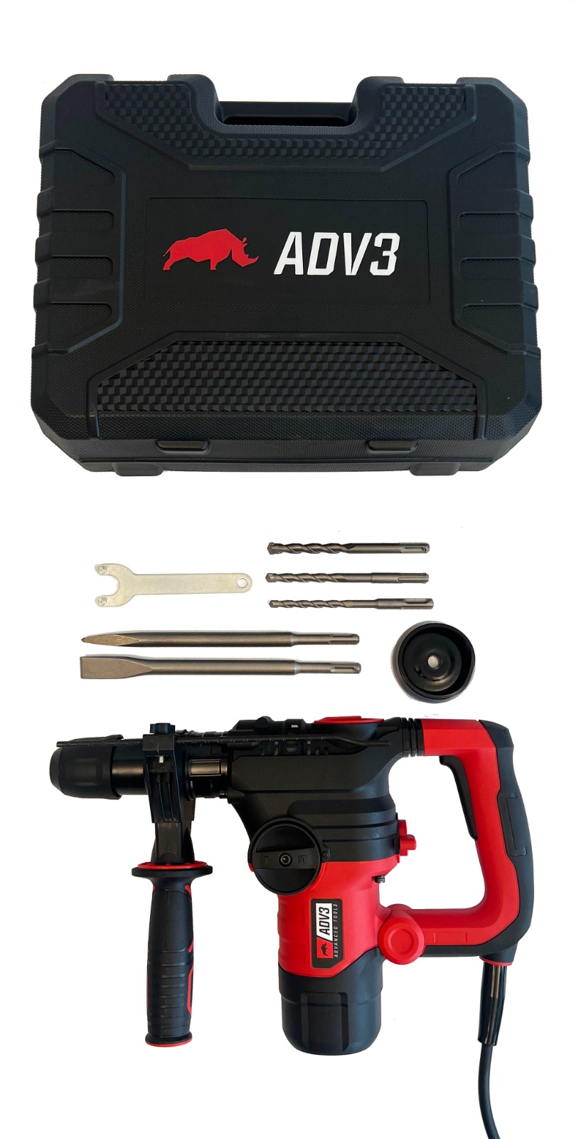 El Rotomartillo Adv3 Es Una Herramienta Pensada Para Trabajos Intensivos. Diseñada Para Perforar Materiales Y Superficies De Alta Resistencia. Equipado Con Un Sistema De Impacto Por Pistones Que Permite Cincelar. Taladrar Y Perforar Estructuras Resistentes Utilizando El Accesorio Adecuado Para Cada Tarea.