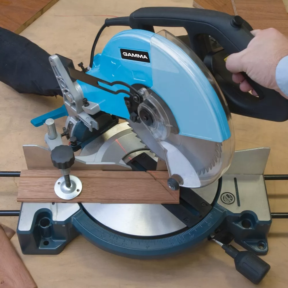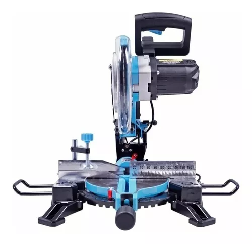 Esta sierra ingleteadora ha sido diseñada para cortar madera y productos de madera en interiores. Fácilmente transportable. Posee soportes laterales y prensa para fijar la pieza. No apta para cortar metales.