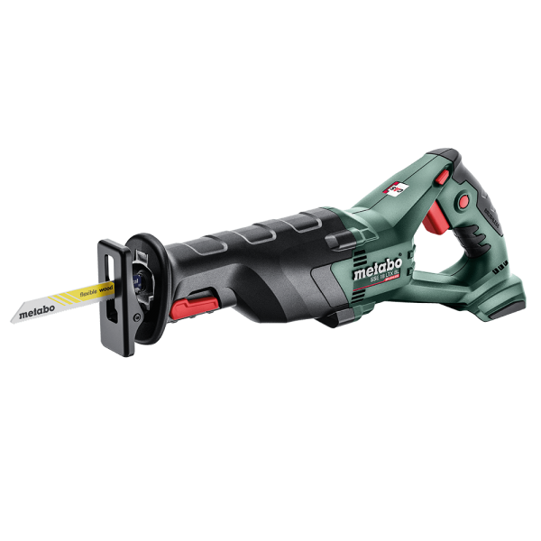 Sierra sable a Batería 18 V. Súper liviana y manejable con una o dos manos. Ideal lugares de acceso difícil. Alojamiento de hoja de sierra Quick de Metabo. Cambio rápido de herramienta.