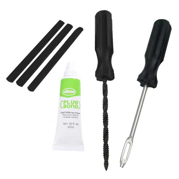 El kit de tapones de neumáticos Slime de 6 piezas incluye todo lo necesario para tapar esos desagradables pinchazos en los neumáticos. Utilice el escariador ergonómico y herramientas plugger para limpiar el agujero e inserte las cuerdas de neumáticos de alta resistencia. Perfecto para ATVS, carretillas, cortacéspedes y otros neumáticos todoterreno sin cámara.
