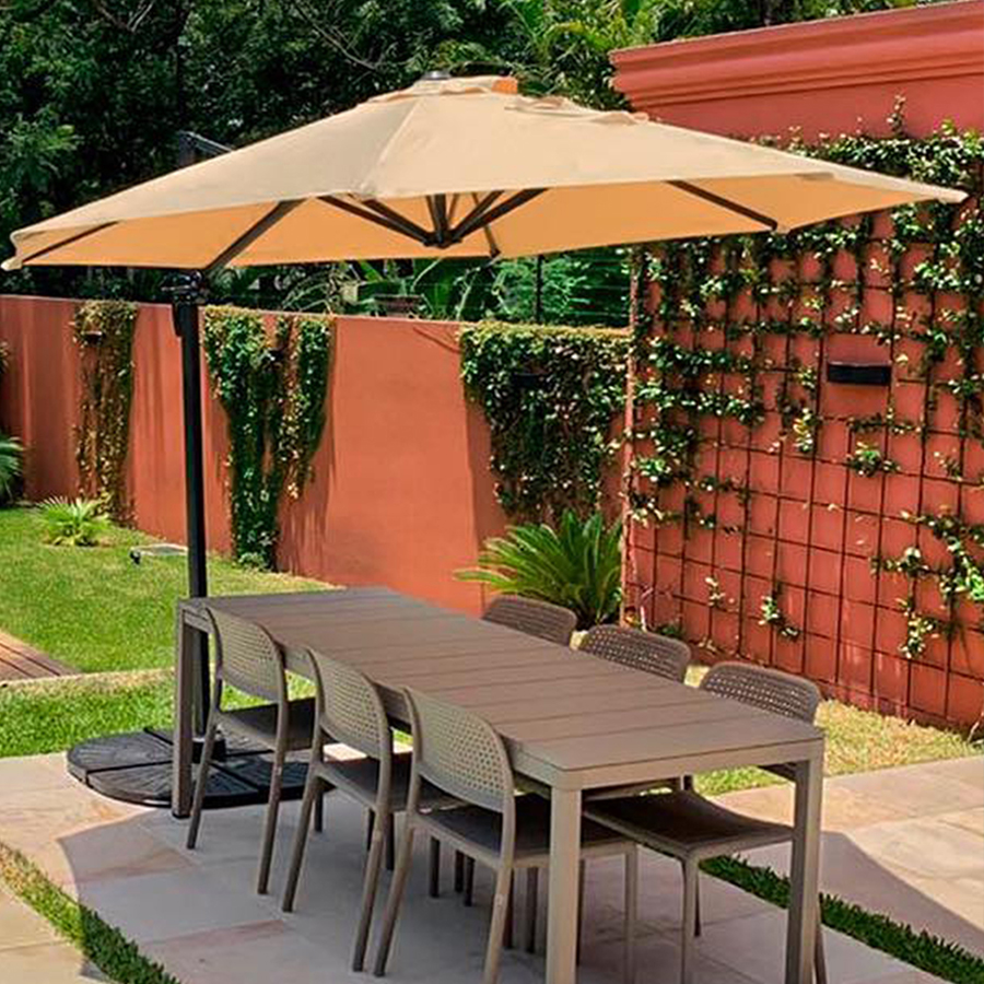 Sombrilla Roma Beige. Tama total de la pantalla: 3x3 metros. Pantalla de polyester super resistente con air vent, protecci UV y tratamiento coated water repelent.